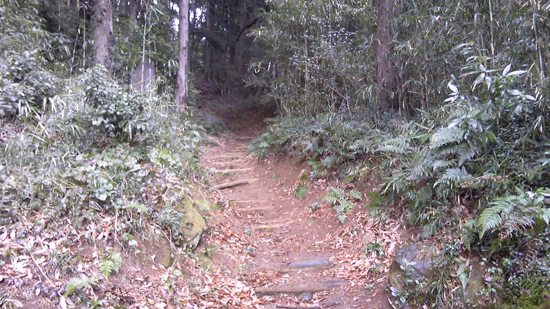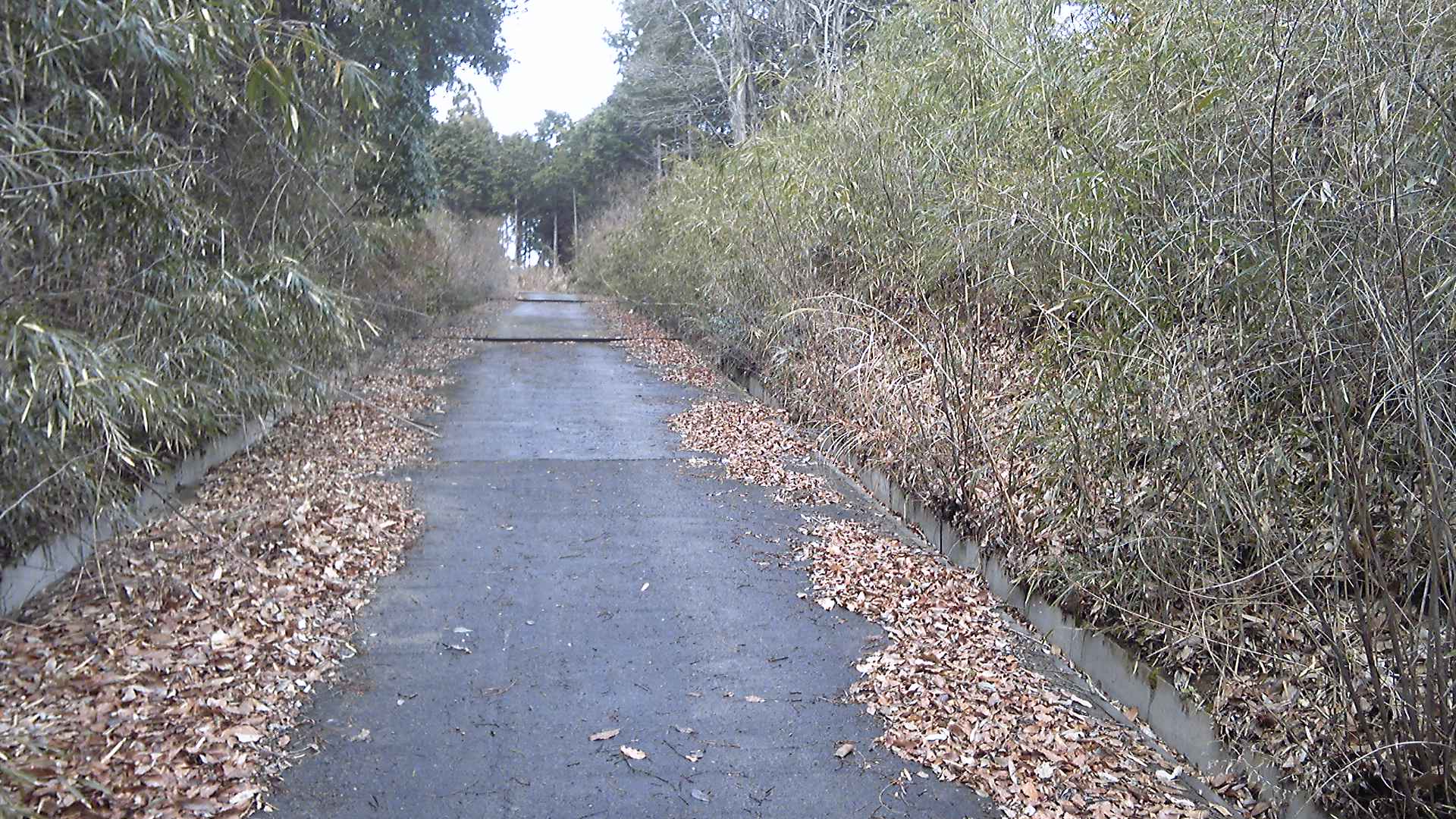 「通行止」の看板が道の横によけてある最後の家を過ぎると、筑波山系名物滑り止めコンクリ道になる。傾斜はかなりきつい。標高差200mだからたいしたことはないと思って登るが、なかなか峠まで行かない。何度もスマホで現在地を確認する。
