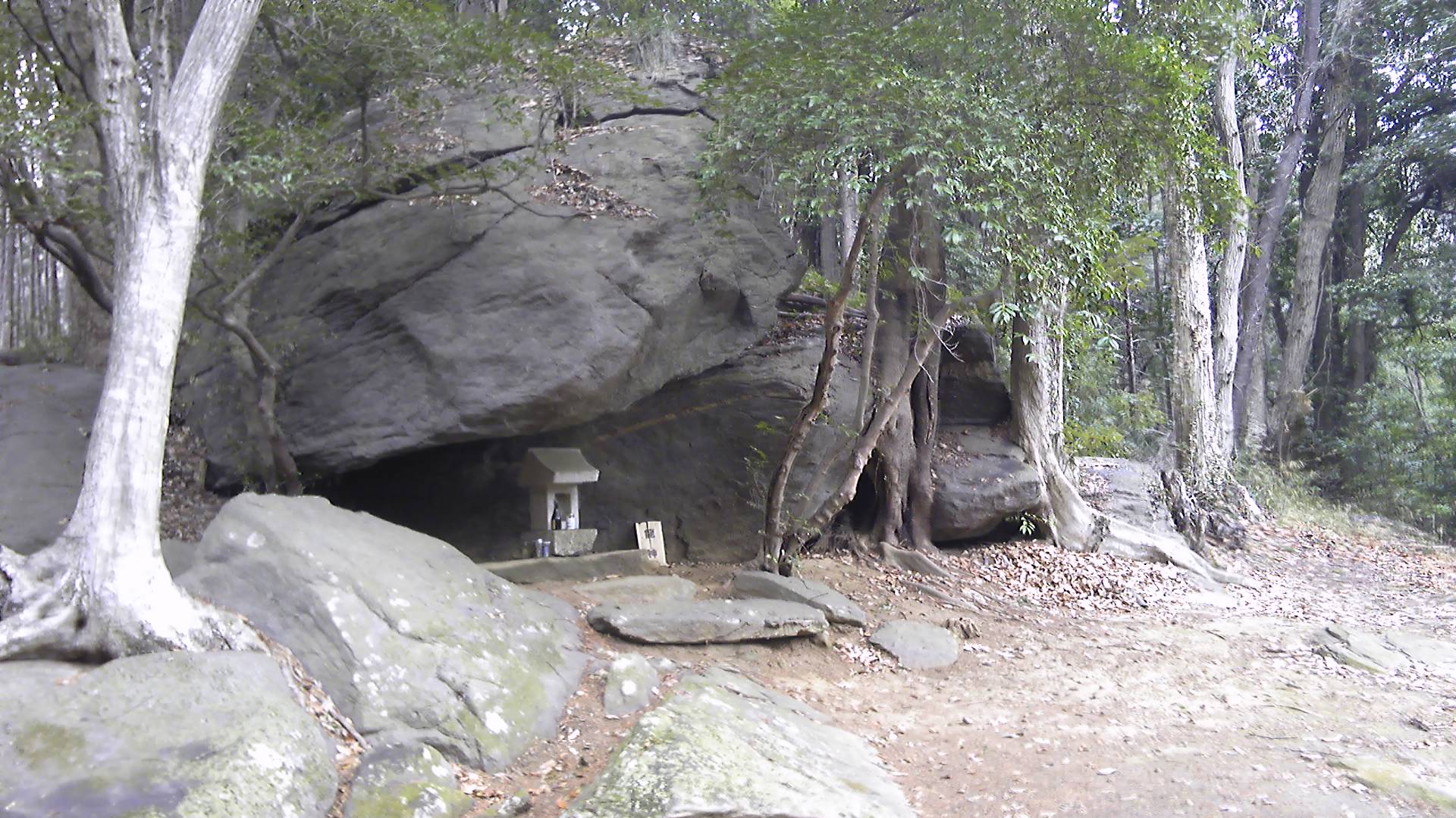 山道を登り切ったあたり、巨石の下に竜神様の祠があった。