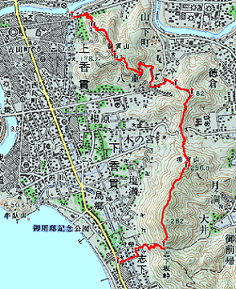 結局、往復1時間以上かけてもとの場所に逆戻り。一応、表登山道も途中まで行ってみたものの、倒木あり草むらありだったのでことらも断念。湯河原駅まで4kmほど歩いてこの日の行動は終了となった。