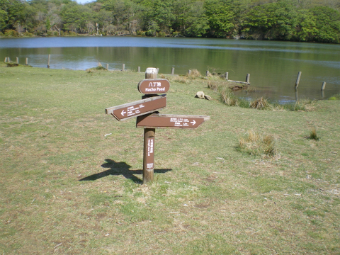 湖畔に立てられている案内板を読む。この八丁池は昔、天城山のカルデラ湖だと思われていたが、最近になって、地殻変動により生じた谷の奥の窪みに水がたまって今日の姿となったということが分かったそうだ。言われてみると、カルデラ湖とはちょっと立地的に違うように思える。それにしても、これだけ水がたまるということは雨が多く湧き水も豊富だということであろう。