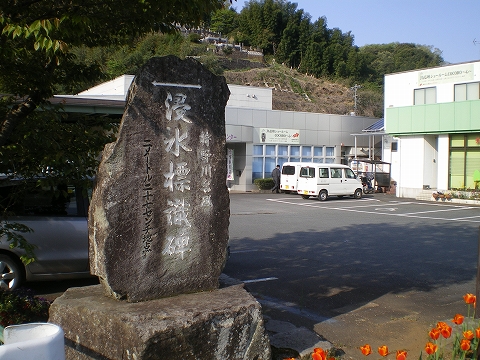JA敷地内に建つ「狩野川台風浸水標識碑」。過去の災害の記憶は、ないがしろにしてはならないと思います。