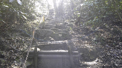 どうも写真ではうまく写らないのだが、葛城山背面登山道の急登。廃道ということのようです。