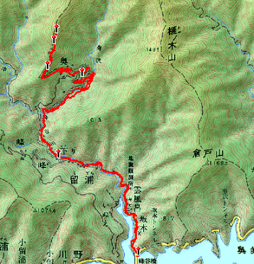 普通の初級者コースには載っていない山で、数年前には滑落死亡事故も起こっている。とはいえ、その後危険地帯は整備されたようだし、例年8月1日に山開きがあり頂上の天祖神社に信者が登っていると奥多摩町のHPに書いてあるので、それなりに人の手が入っていると思われた。私が大変苦手としているのが、整備されていない登山道なのである。