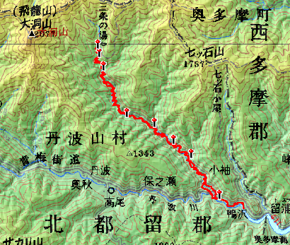 川苔山 鷹ノ巣山(撤退) 三条の湯
