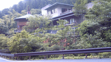 ステッキで体を支えながら、何とか進む。傾斜がそれほどでもなかったのが幸いだった。しばらくすると、資材置き場のようなこじんまりした小屋が見えてきて、その先の曲がりを越えると三条の湯の建物が突然現れた。午後4時半。結局、3時間のコースを3時間10分で歩いたことになる。