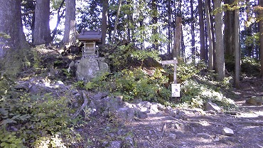 さて、ようやく登山道に入ったものの、ここまで2時間近くの車道上りで少々疲れ気味である。それほど急勾配でもないはずなのに、息切れして足があまり上がらない。10分くらいで着くはずの神社まで行くのに、かなり難儀してしまう。
