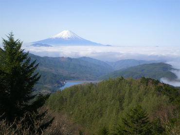息を切らせて頂上にたどり着く。登山口から2時間半。心配していたとおり、黒山の人だかりである。先に登った奥さんが、場所を確保しておいてくれた。この日はPM2.5の影響もあまりなくいい景色だったが、とにかく人が多いので早々に頂上を後にする。見ているとみなさん日向和田方面に下って行く。逆コースをとった方が、ゆっくり自然が楽しめますよ(登りはきついけど)。