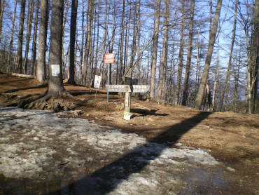 標高が上がるにつれて、道はぬかるみとなっている。昨日の雪が解けたのだろう。登り坂では相変わらず足がぴくぴくするので、そのたびにスポーツドリンクを飲んでいたらとうとう1.8リットルの在庫がなくなってしまった。あと水分はヴィダーインゼリー1パックしか残っていない。ここまで来たらがんばるしかない。