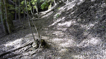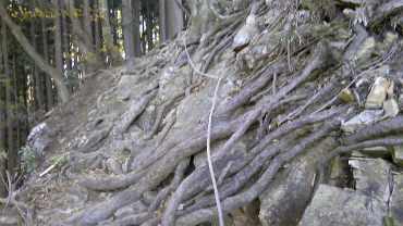 この近道を歩いていて思ったのは、地盤といい、道路際の石垣の造りといい、丹波天平の高畑集落跡への道とそっくりということであった。確かに地理的には近いので似ていて不思議はないのだが、あちらは山梨県、こちらは東京都である。ほとんど人が通らないのに電柱が続いて建っていたり、バイクか何かが走った形跡がみられるのもよく似ていた。
