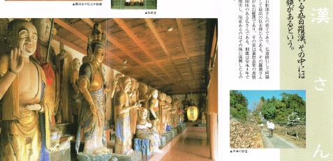 五百羅漢内部は撮影しなかったので、いただいたパンフレットから引用。五百体の羅漢像が3列に並んでいる。