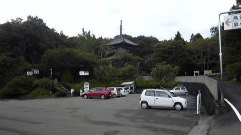 時刻はまだ11時20分、前日に「うどん萌月」のご主人から聞いたタイムリミットである12時には余裕がある。とりあえずトイレへ。ここのトイレに行くには納経所の横、お寺さんの庫裏の横を抜けていく。庫裏は宿坊でもできそうなくらい大きかった。トイレの横からみると、庫裏のすぐ隣が駐車場となっている。お寺の関係者であれば、三百何十段の石段を上がらなくても車で来れるようだ。