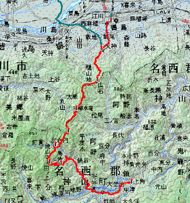 それどころか、2時前に井戸寺を出られれば、次の十八番札所への近道となる地蔵越に行けるかもしれないという楽天的な計画を立てていたのである。2時に井戸寺だと逆算すると11時には大日寺を出なくてはならないことになるが、15kmを3時間半で歩くのは可能と考えたのである(ちなみに、WEB「歩き遍路情報」のプランでは、神山温泉発7:30で大日寺着は11:10である)。