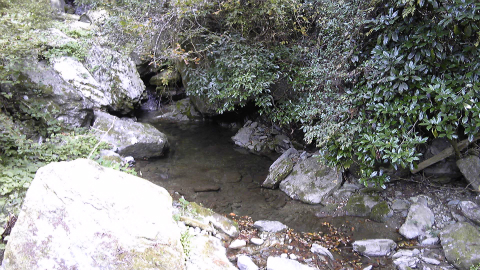 こりとり川まで下ったのは10時30分、浄蓮庵からここまで45分もかかった。30分くらいと思っていたので、予定よりも5割増しである。橋の下を流れる川は1mくらいの川幅しかなく、ちょっと向こうには一枚岩の平らな場所があって、なるほど水垢離を取れそうなところである。そしてここまでは下りだったけれど、ここからは登る一方となる。