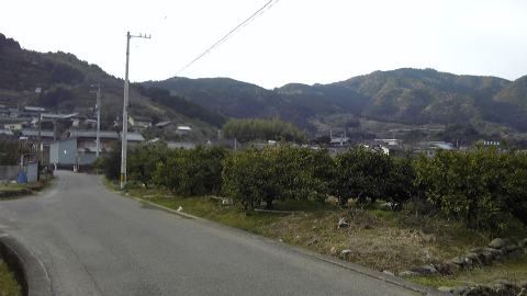 ひと気のない山道の国道をひたすら下って行く。気が付くと、いつの間にか傾斜が緩やかになり、左右に広がっているのは畑で、害獣除けの電気網で囲われている。ようやく人里が近づいたと分かってほっとする。このあたり、右の山道に入ると鬼ヶ岩屋温泉という温泉があるらしい。由緒はよく分からない。やがて、JR辺川駅への道案内が出てきた。牟岐のひとつ前の駅である。