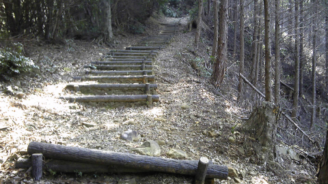 この道は、弘法大師が歩かれた際に闇夜で水もなく、例によって加持されたところ清水が湧くとともに水底に光る石が現れて闇夜を照らしたという伝説があり、月夜御水庵という番外霊場が置かれている。ここを通るルートも考えられるが、問題はこの日4度目となる峠越えの道である。