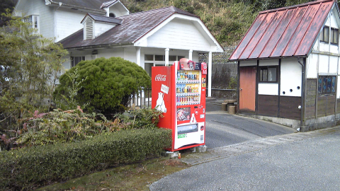 室戸まで90kmを過ぎたあたり、民家の前に、久しぶりにコカコーラの自販機登場。