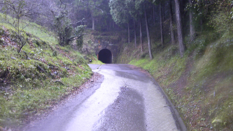 今回の区切り打ちでは、新伊豆田トンネル1600m、横浜トンネル800mなどいくつか長いトンネルをくぐったが、松尾トンネルも1kmを超えるたいへん長いトンネルである。