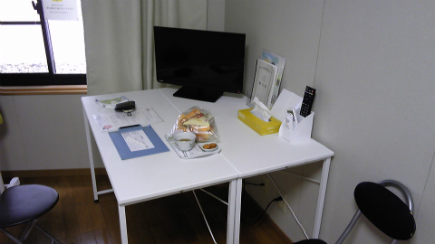 中を覗くと、リサイクルの応接椅子やテーブルが置いてあって、建設会社や地元有志の協力で作られたことが書かれている。小屋の向こう側にトイレもあった。ありがたく休ませていただく。