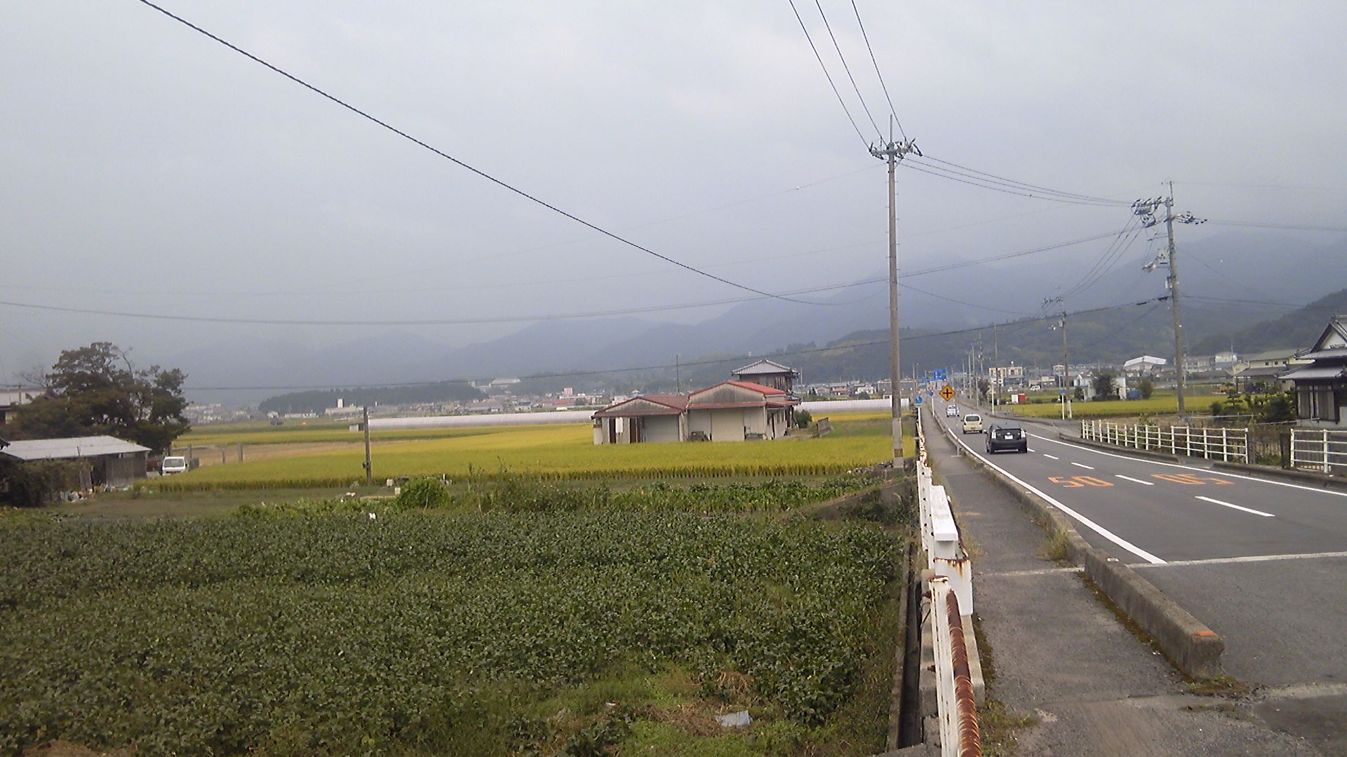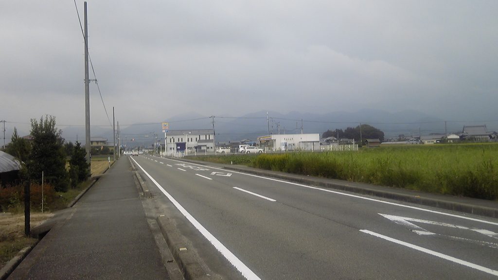 壬生川のパン屋さんで入手したカツサンドとあんドーナツを食べても、なかなか頭がすっきりしてこない。ホームセンターの前で県道を左折し、小松市街方向に向きを変える。すっきりしない頭と同様、行く手の山々は雲に覆われてよく見えない。