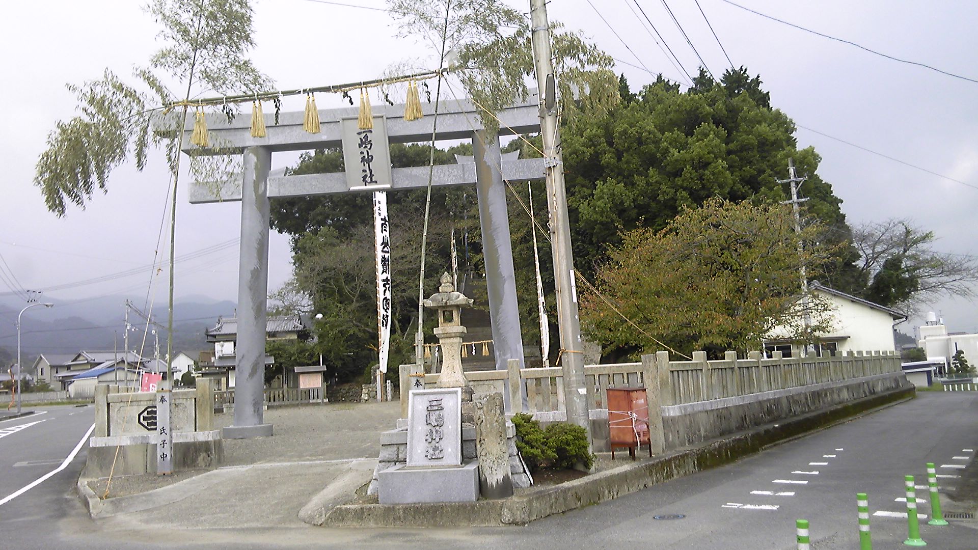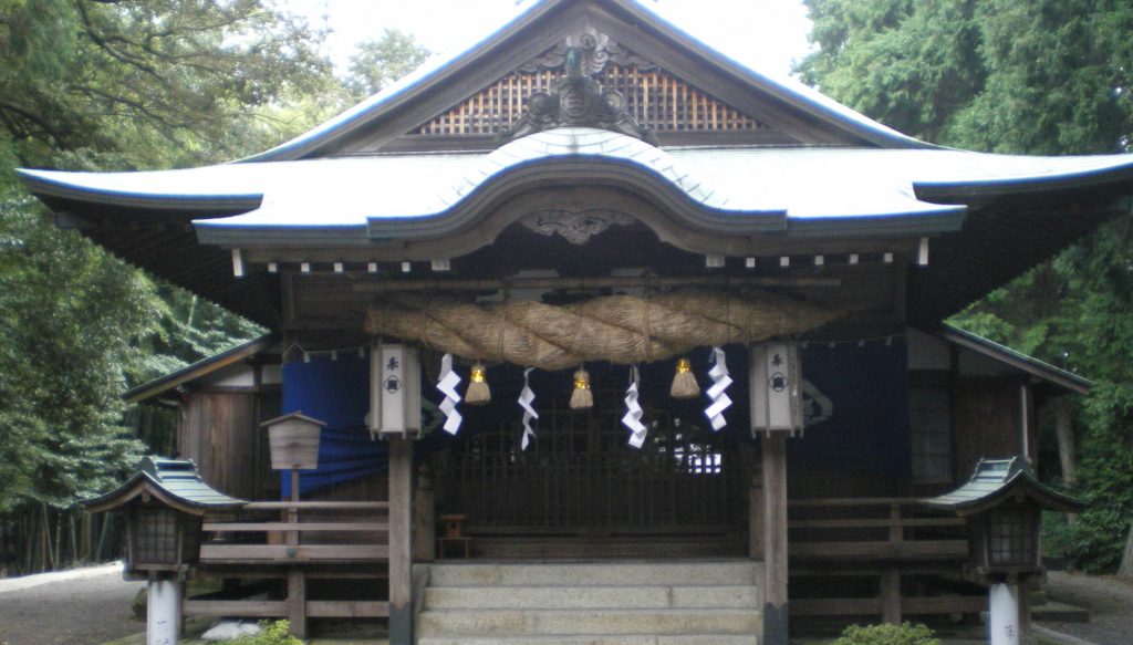 三嶋神社本殿。太い注連縄のある立派な建物だが、お正月とか七五三ではないので無人のようであった。