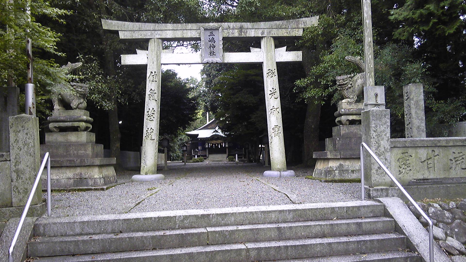 三嶋神社はこの周辺でたいへん大きな神社である。神社全体が丘の上にあるのは、もともと古墳であるからだ。