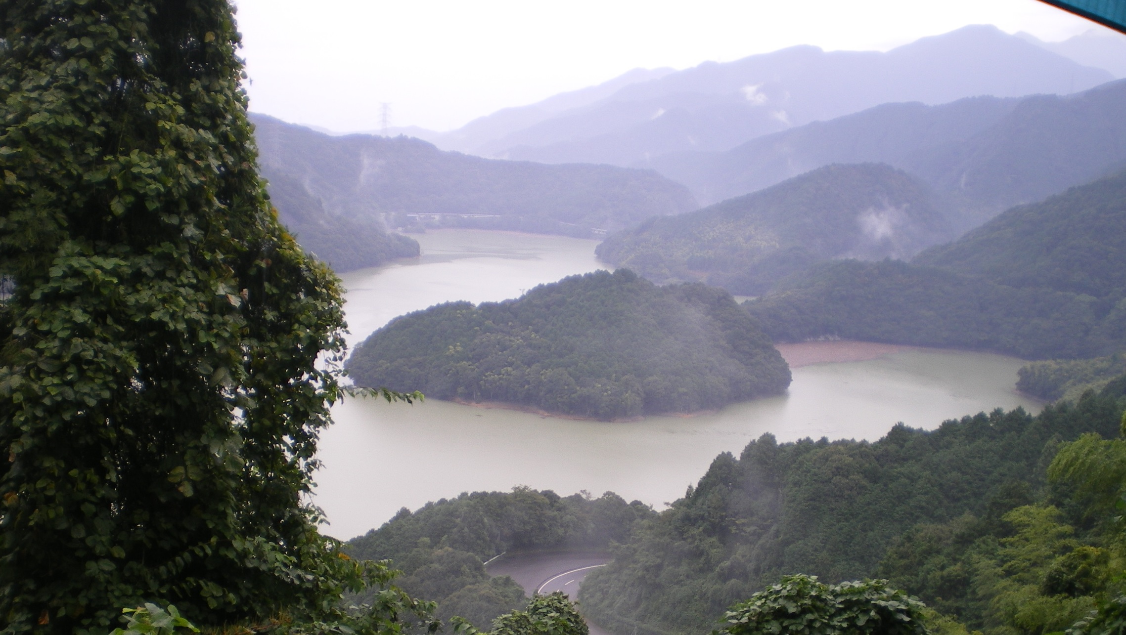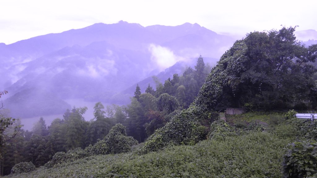 小松の街が近づき、うっすらと横峰前衛の山々が見えてきた。この後雨になり、翌日の横峰寺はきびしい登りとなった。