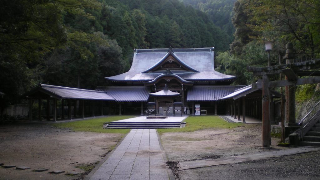 境内は山(古墳)の上にあるにもかかわらず、見た目よりも奥行きがあって広い。阿波一ノ宮や土佐一ノ宮と比べても見劣りしない広さである。本殿の間口はそれほど広くないが、巨大な注連縄が周囲の空気を圧している。
