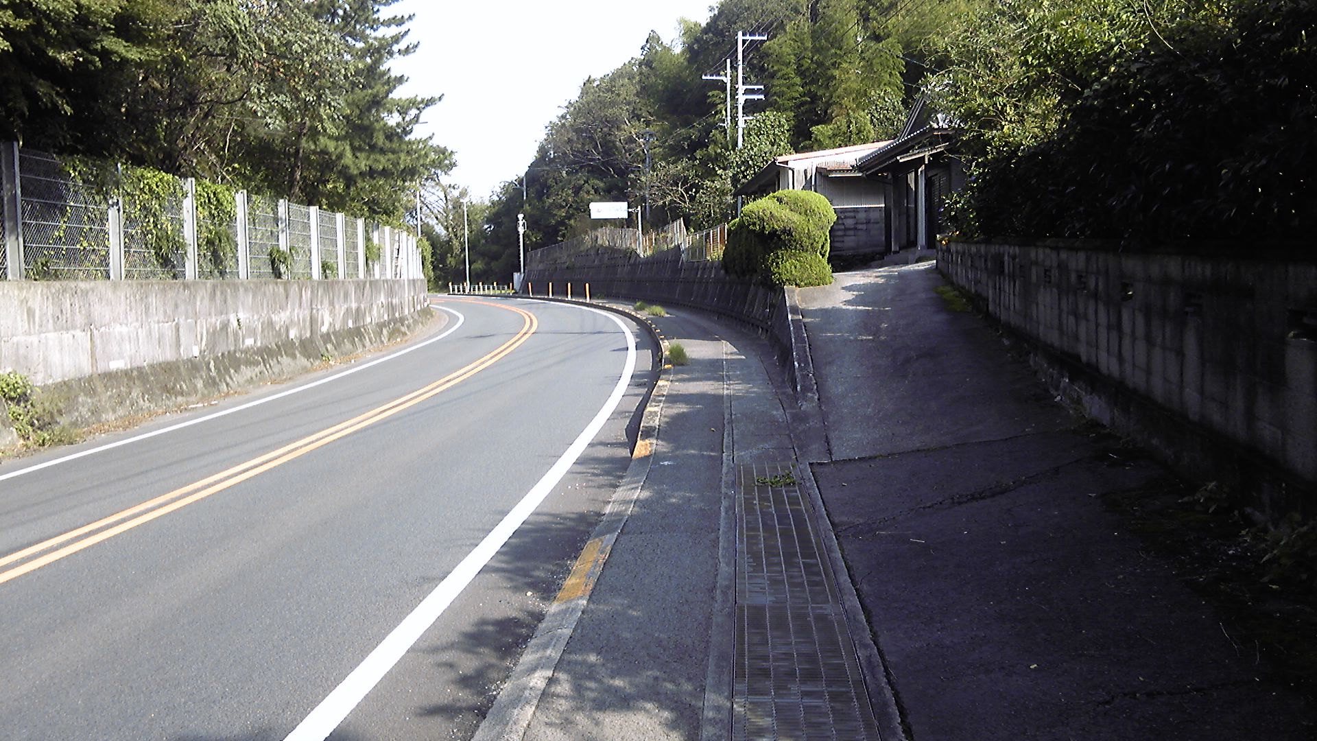 意外だったのは、三角寺の奥にも民家が続いていることだった。そして、道はだらだらと登り坂である。椿堂まで下りだとばかり思っていたので、かなり当てが外れた気分だ。重いリュックを背に、肩で息をしながら先に進む。最後の一軒屋は前の家からかなり離れていたが、おばあさんが家の前の道を箒で掃いていた。どこまで掃くのだろうかと思った。