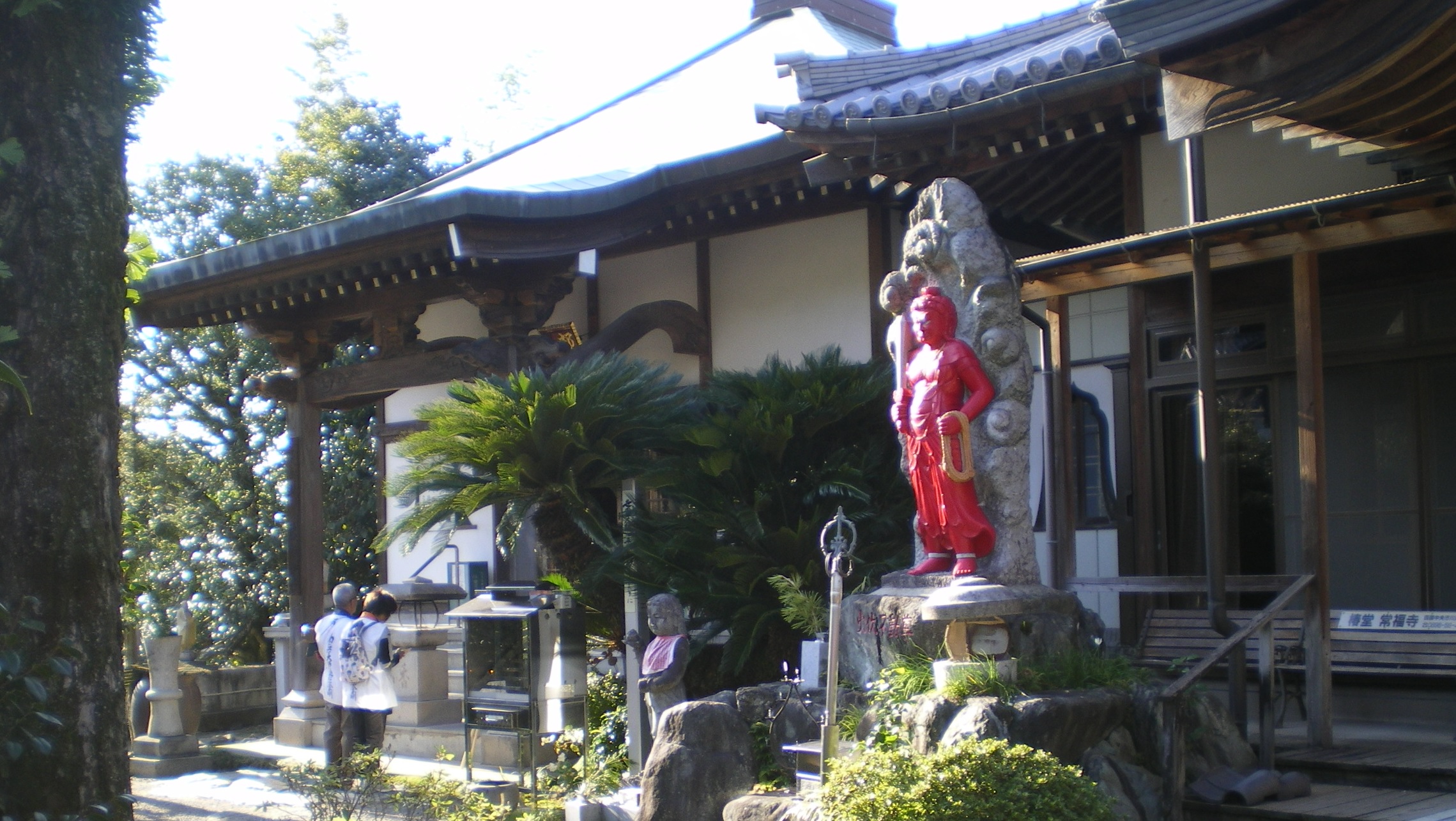 境内の不動明王も山門同様に赤い。集落全体が川沿いの斜面に建てられているので、境内はそれほど広くなく、奥行きもない。歩いてきたのは私だけだったが、車でお参りしてきた人達が何人かいて、お参りするのもご朱印をいただくのもちょっと待たなければならなかった。
