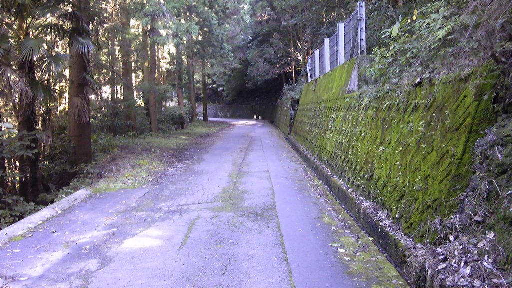 三角寺のところでも書いたが、遍路地図によると三角寺から椿堂間の距離は歩道で6.0km、車道を通っても6.4kmと書いてある。本当にそうなら、1時間半あれば着くはずである。路面は登山道ではなく、舗装道路である。しかし着かない。道案内通りに歩いて、私の場合はGPS測定値で7.4kmあった。休憩時間を除いても1時間55分かかっている。