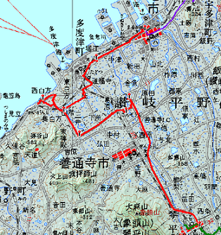[行 程]根香寺 12:55 →(7.3km)15:05 飯田お遍路休憩所 15:20 →(6.0km)16:50 一宮寺 17:20 →(0.4km)17:25 田村神社 17:35 →(1.2km)17:55 琴電一宮 (→高松(泊))