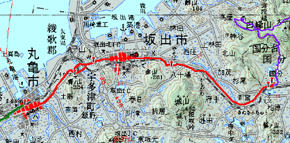 [行 程]白峯寺 9:50 →(3.3km)11:10 十九丁 11:15 →(0.7km)11:40 県道横休憩所 11:55 →(1.4km)12:25 根香寺 12:55 →