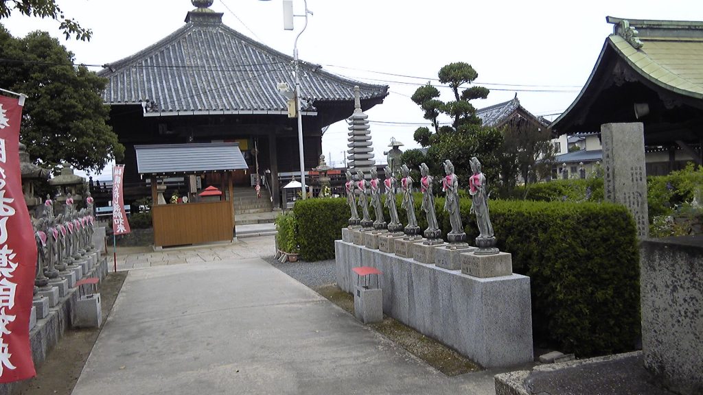 午前8時出発。琴平から善通寺に戻る道は、昨年の金毘羅参りで歩いたコースの逆ルートである。JR善通寺駅まで約1時間、次の駅が金倉寺で、駅から少し歩くと七十六番札所である。さすが弘法大師のおひざ元で、七十一番弥谷寺から七十八番郷照寺まで善通寺から半径数km以内に固まっている。