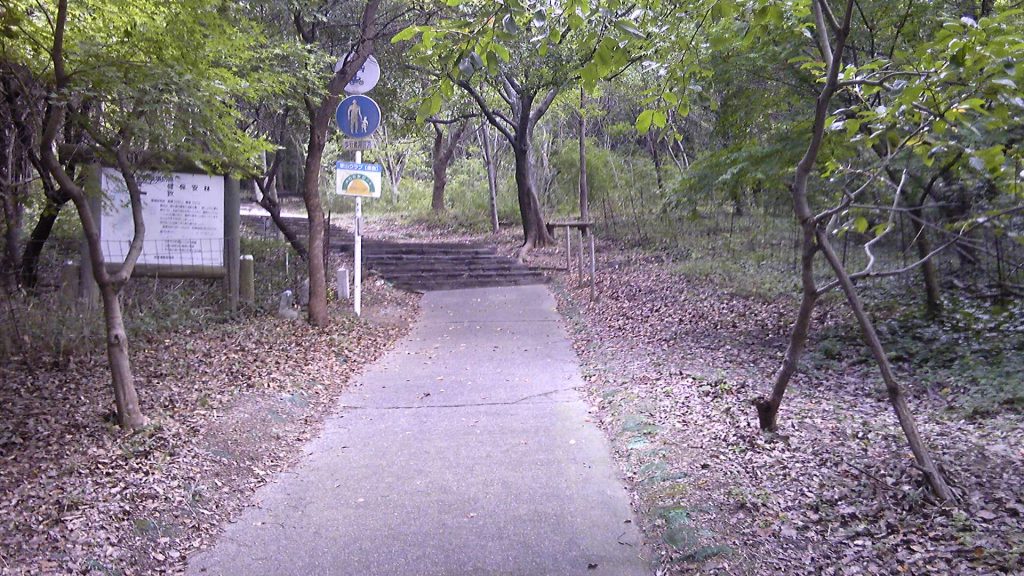 競技場の横を抜けて住宅街に入る。登山口はまだのようだ。ため池沿いに眺めのよい公園とベンチがあったので、休憩とする。マクドナルドから2時間弱。普段なら水分補給してすぐ歩き出すところなのだが、なかなか腰が立たない。