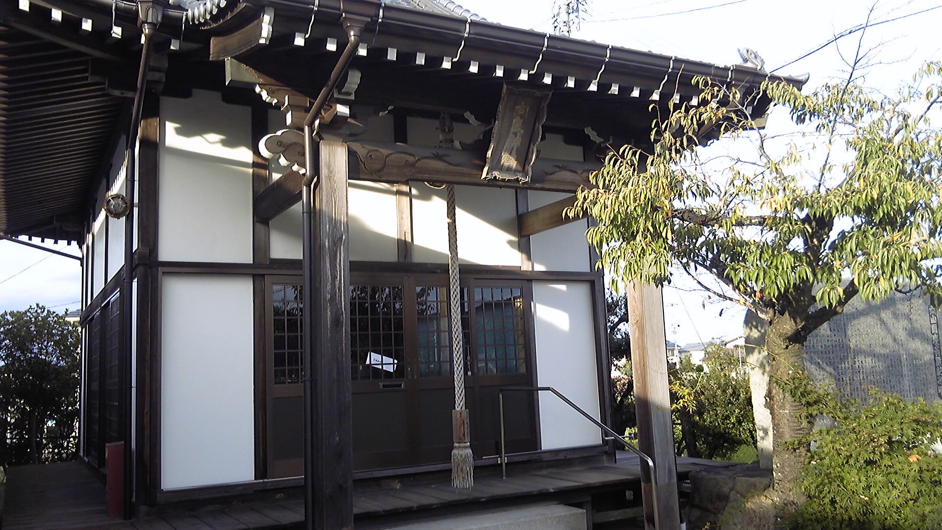 本堂の斜め前に聖天堂がある。本堂より一段下に建てられているが、大きさは同じくらいである。石鎚山も聖天が祀られていたが、同様に山岳信仰と関わりの深い神様として、古くから重視されてきたのであろう。真言宗だけの信仰であれば、聖天堂の位置には大師堂がある。