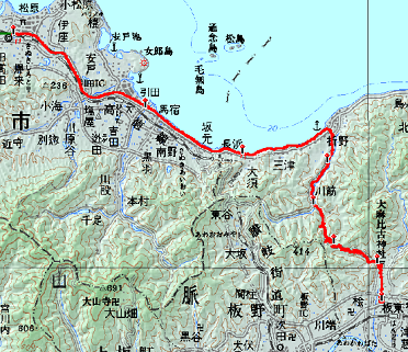 [行 程]ホテルAZかがわ 7:20 →(10.4km)10:05 三津トンネル前休憩所 10:15 →(6.3km) 12:00 林道分岐 12:10 →(2.5km)12:55 卯辰越 13:15 →