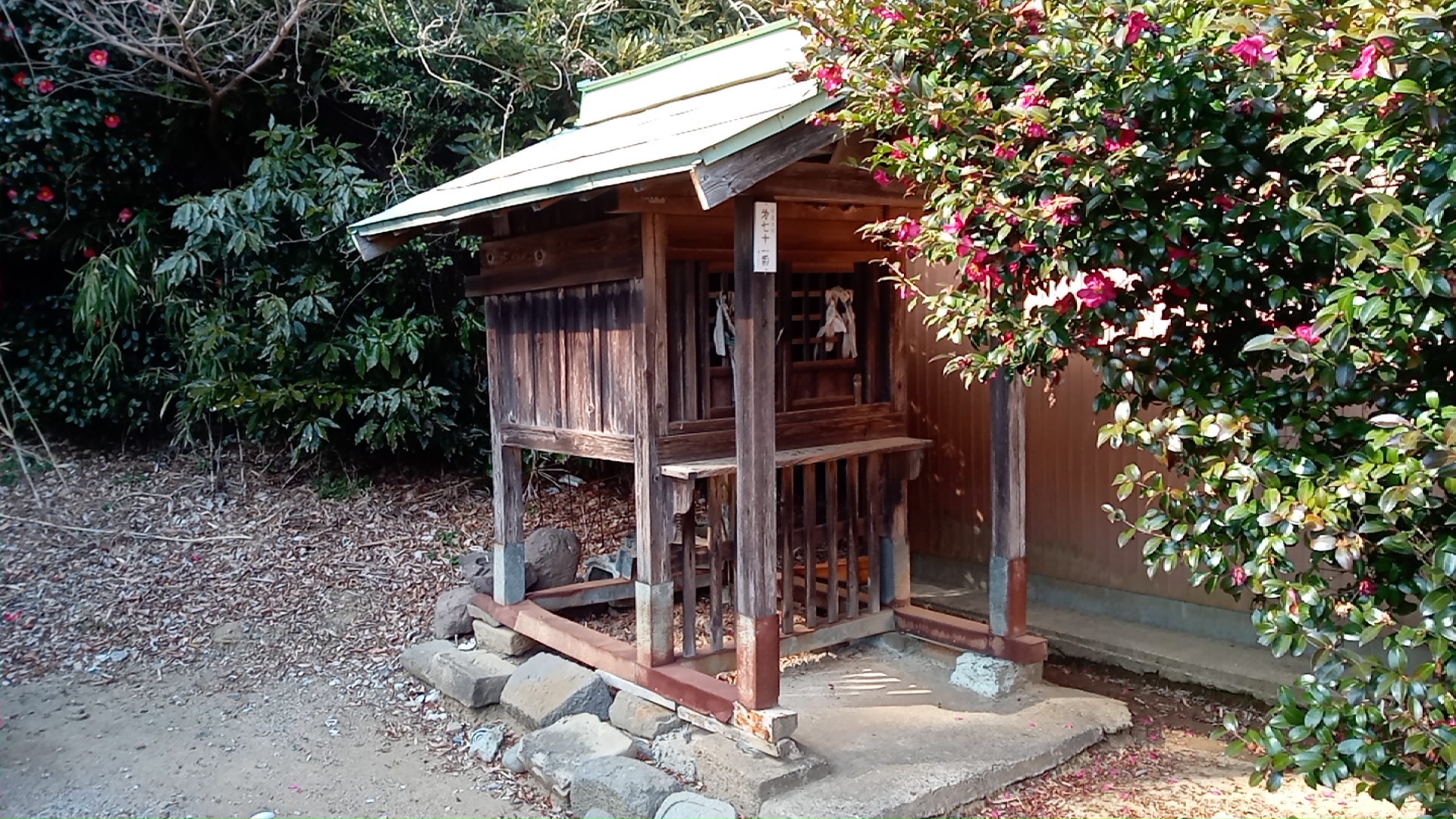 小さなお堂は、向かって左側に2つ建っている。そのひとつに、七十番の札所がある。傍らに「南無大師遍照金剛」の石碑、小堂には、お墓によくある石の香炉と花立てが備え付けてある。