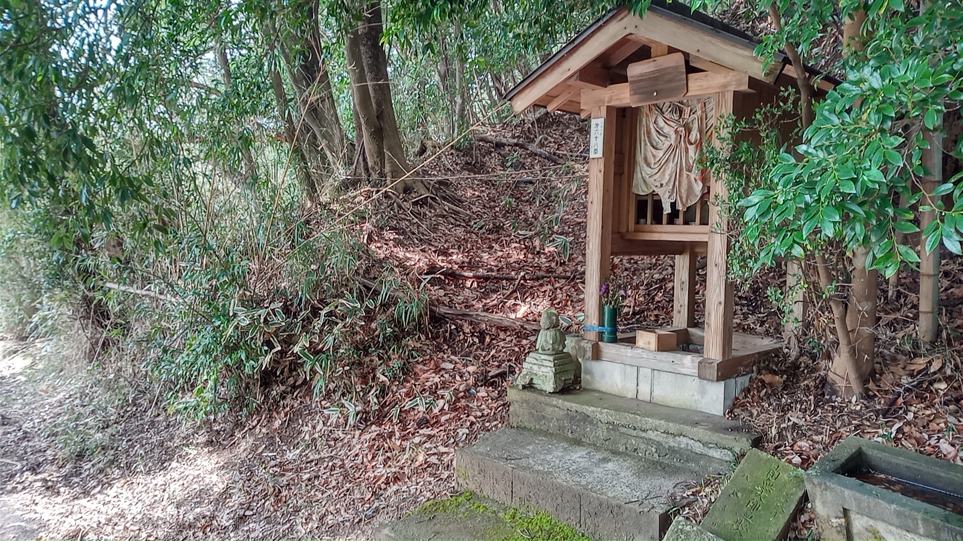 次の松虫寺までは、ニュータウンの中を通るルートもあるが、田舎道を辿ることもできる。坂を下って登ってのハードな道だが、途中の路傍に小さなお堂がある。番外札所の権現下かもしれない。