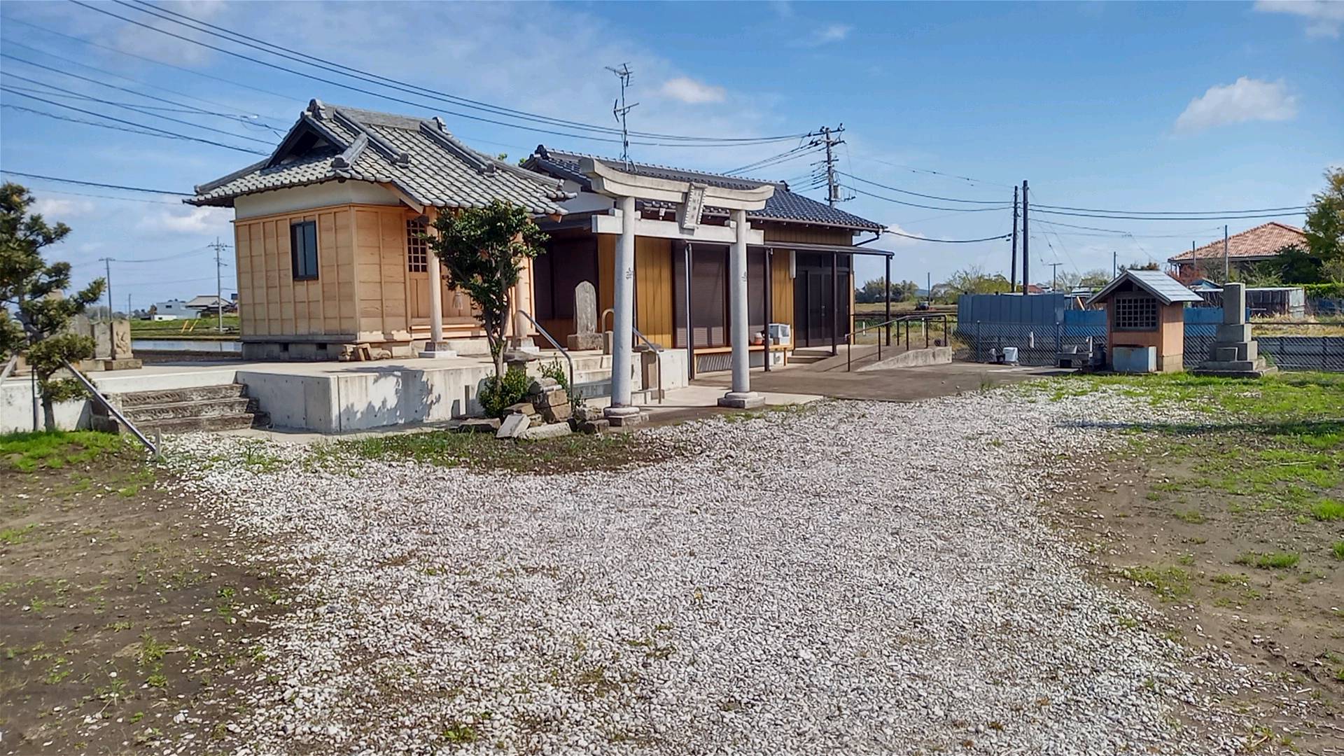 萩原新田弥陀堂から15分ほど笠神方向に歩くと、大日堂と稲荷堂がある。大日堂は集会所と併設され、お大師様のいらっしゃるところだけ格子になって、お参りしやすくなっている。その横に稲荷神社があり、神社と並んで稲荷堂の小堂がある。