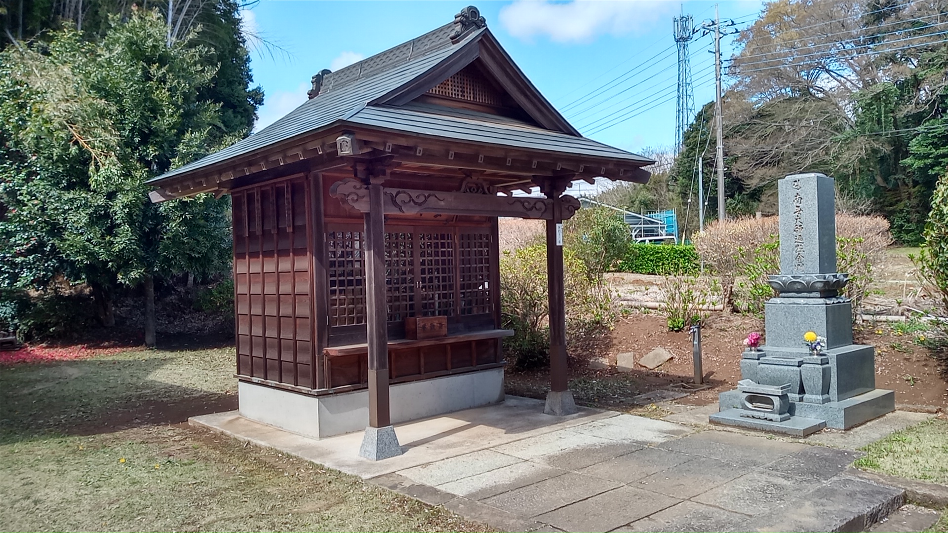 名前のとおり、地域で信仰を集めていたご不動様を祀ったお堂で、老朽化が進んだため平成になってから改修されたと説明板がある。白木造りで真新しいお堂である。