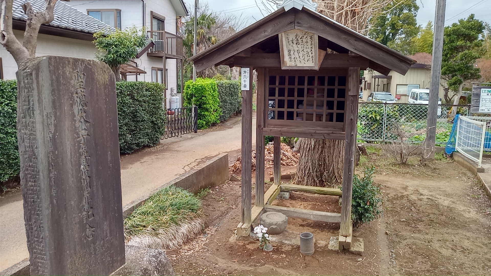 札所の小堂の前に回向柱が立てられているのは、白井小廻り大師講のものと思われる。というのは、ここから白井にかけての札所には、同様の回向柱がいくつもあるからである。
