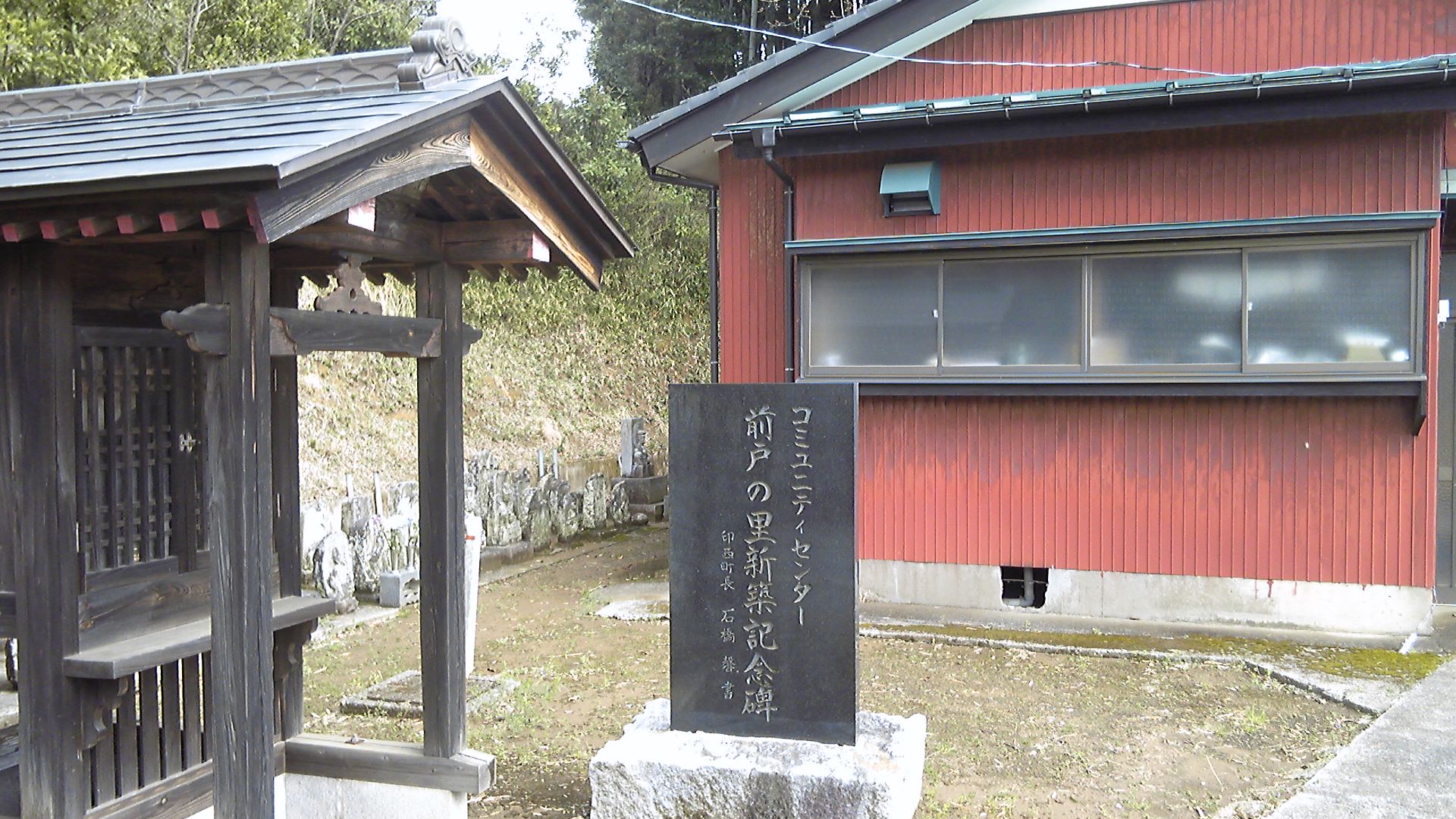 松崎集落の中にあるコミュニティセンター前戸の里。由緒ありそうな小堂が置かれており、番外札所の迎堂だったかもしれない。