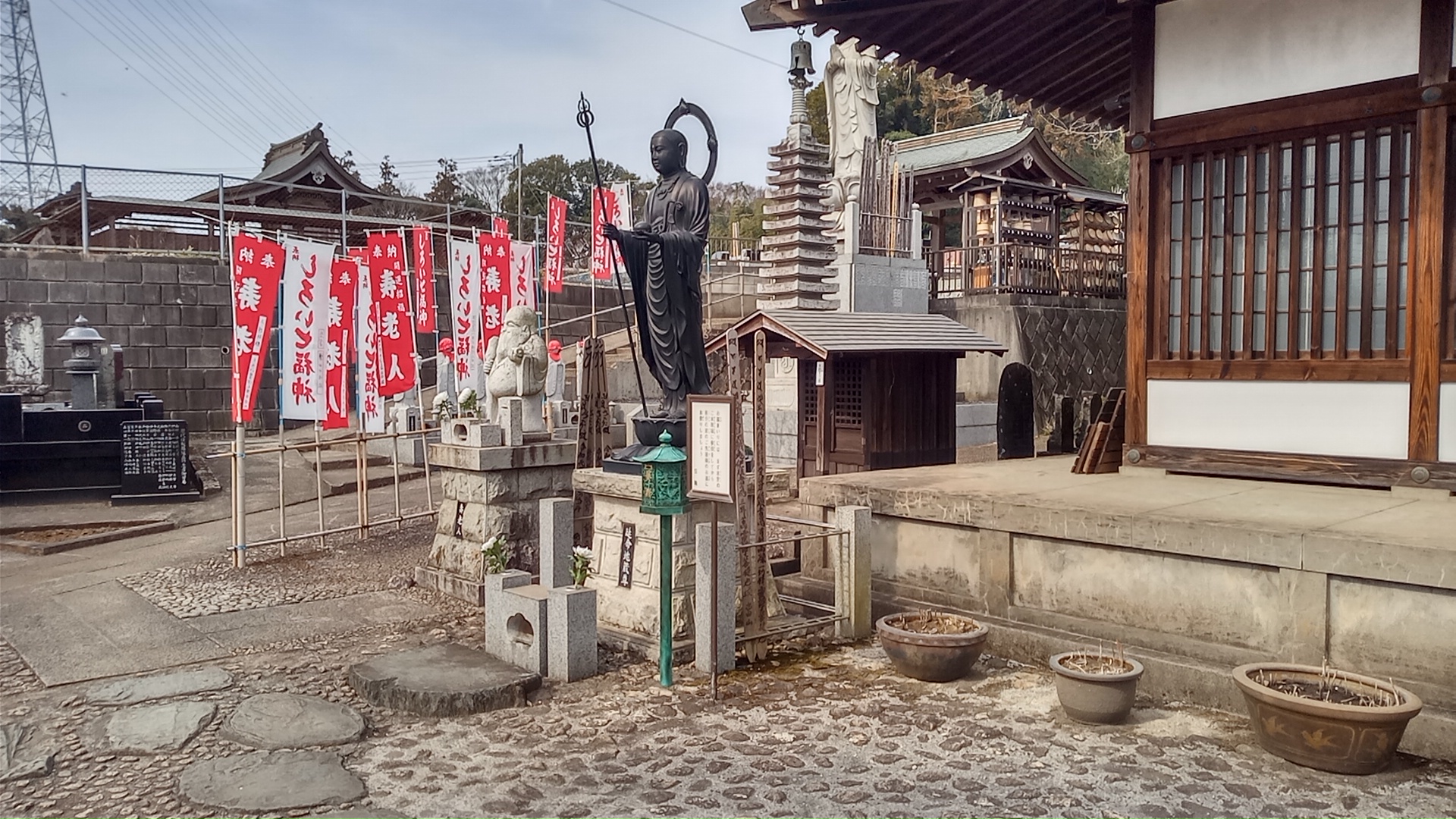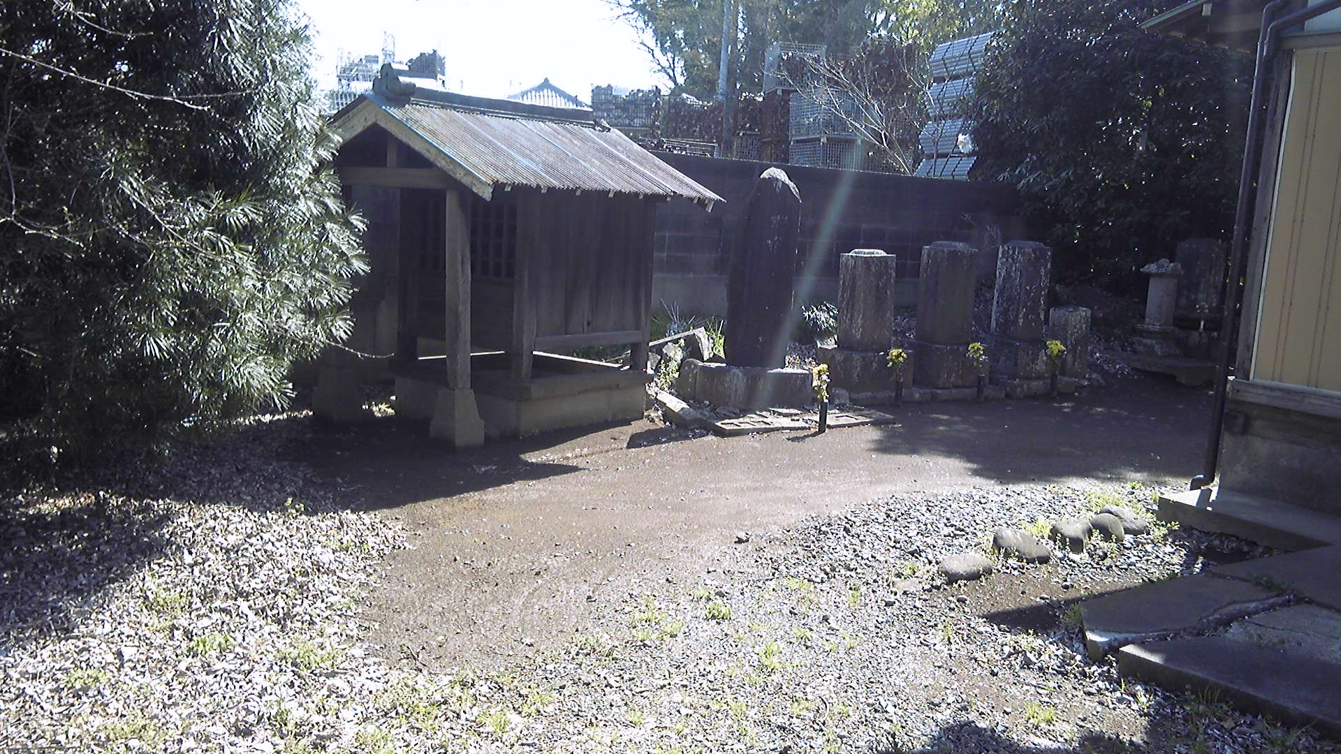 神宮寺札所。札所と向かい合って、白井大師講記念碑など過去の記念碑がいくつか並んでいる。