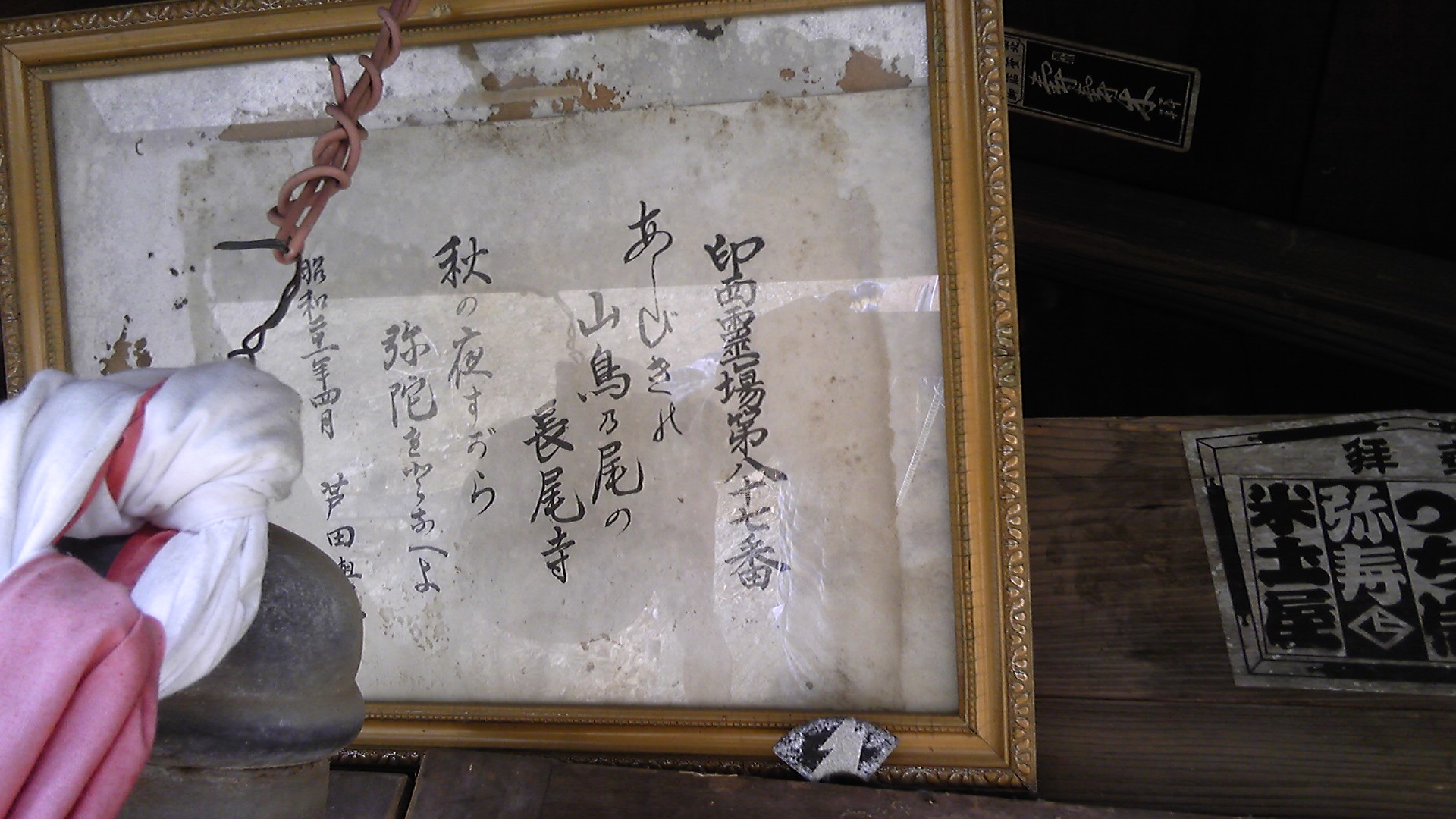 白井観音堂の札所には、四国八十七番長尾寺のご詠歌が掲げられている。昭和二十一年、地元の大地主芦田さんの筆である。