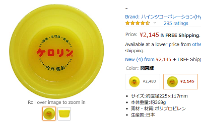 昔なつかしいケロリン桶が、amazonで出品されていました。新品というから、いまだに製造されているようです。値段はそこそこですが、Free Shippingだそうです。