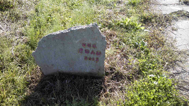 近くのあぜ道に置かれた「NHKきねんひ 2013」。コンクリ破片で作られています。
