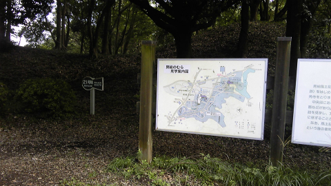 房総風土記の丘は龍角寺古墳群を整備した県立公園で、大小114の古墳がある。大部分は長径十数m程度の円墳・前方後円墳で、堀はなく、古墳の境目も明確でない。いまは林の中で見通しはきかないが、時々木の切れ間から印旛沼が見える高台にある。印旛沼周辺を拠点とした古代の豪族が墳墓とするにふさわしい土地であっただろう。