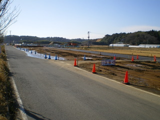 そして180度振り返った逆側は、正月にはほとんど何もなかったが、下の写真のように工事が進んでいる。ブルドーザーはじめ重機もかなりの数入っているのが見えた。そして、正月には入れたのに立入禁止になっているところもあって、前のように間近で撮影することはできなくなっていた。