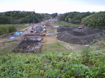 なるほど、橋をかけたりトンネルを掘ることに比べれば、進路に立ちはだかっている高台をなくしてしまう方が安上がりだろう。考えてみれば高速道路の工事でも、山の斜面を切り崩しているのはかなり見慣れた景色である。それでも、歩いて行けるほど近いところで、一年前にはあった土地がきれいさっぱりなくなっているのは、かなりショッキングであった。