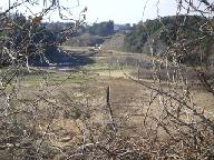 印旛村側工事地区。遠くに見える茶色い崖のところから線路・道路が伸びる予定。